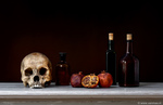2014Stilleven met zalfpotjes en gedroogd fruit.